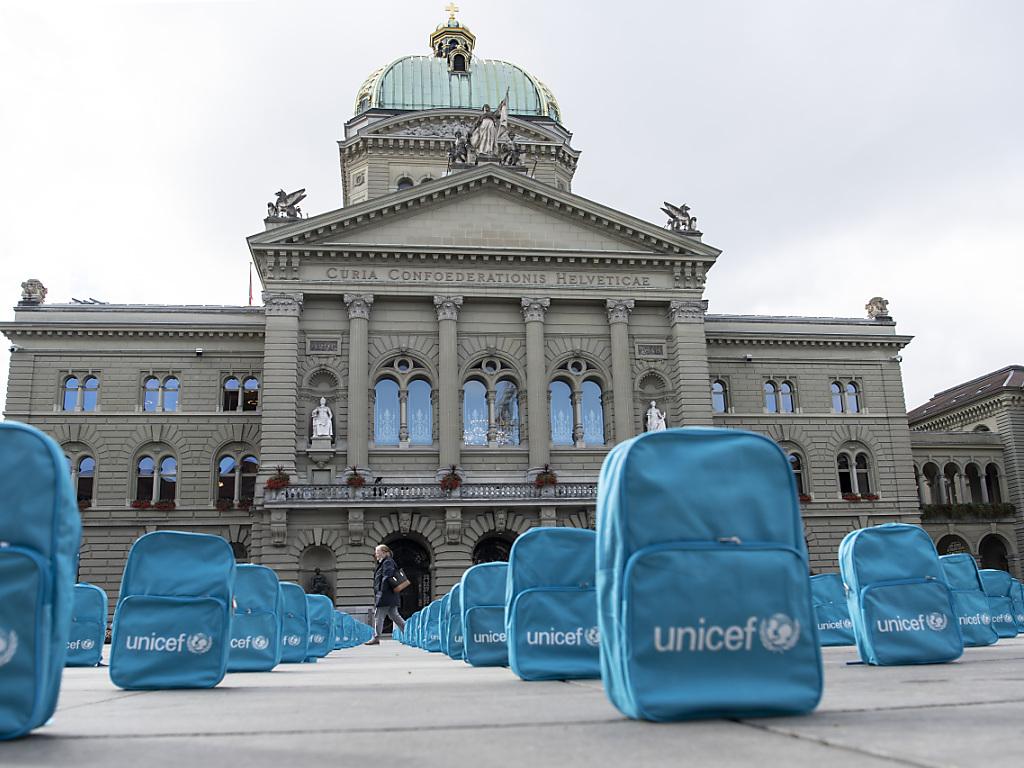 Con un’installazione sulla Piazza federale di Berna, UNICEF mira a sensibilizzare la popolazione svizzera sul diritto all’istruzione del quale devono godere tutti i bambini, anche i 473 milioni che al momento non hanno accesso alla scuola.