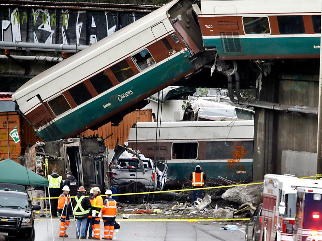 Alcune delle carrozze sganciatesi dai binari sono precipitate su una strada interstatale, la I-5, una delle principali e più trafficate arterie della zona, mentre uno dei vagoni è rimasto per ore in bilico su un ponte ferroviario. Secondo fonti locali, sono in totale 13 i vagoni usciti dai binari.