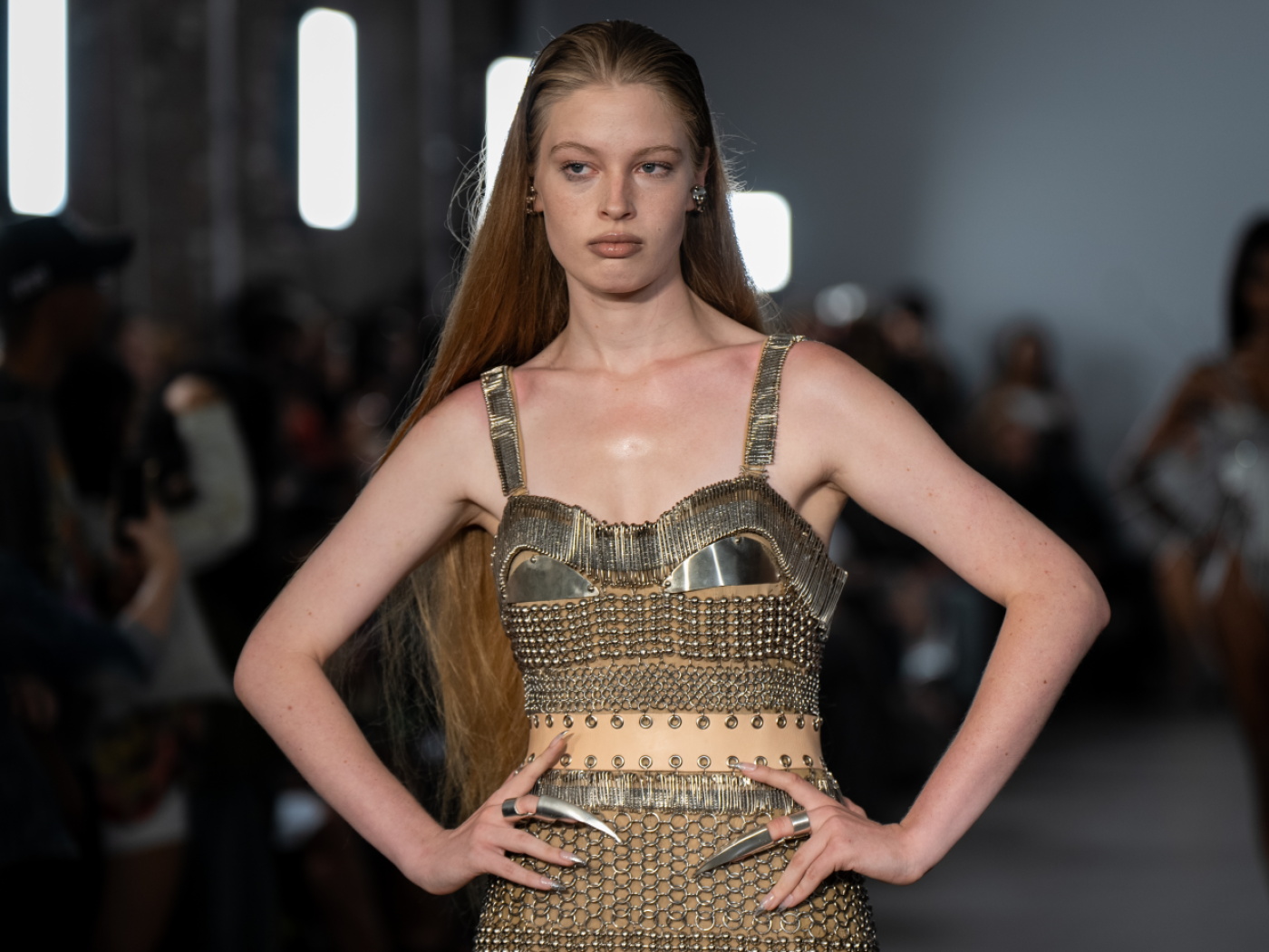 La figlia di Musk ha partecipato allo show di Prabal Gurung nella chiesa di St. Bartholomew su Park Avenue in un maxiabito ecru e lo sguardo da modella fisso nel vuoto. Ha poi calcato le passerelle di Dauphinette e Olivia Cheng (top da bikini e gonna asimmetrica bianca coperta di scarafaggi verdi).