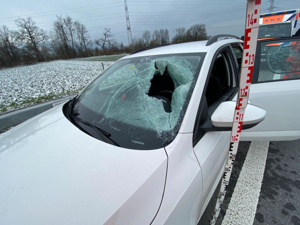 Il conducente dell’auto colpita ha riportato ferite alla testa e alle mani a causa dei pezzi di ghiaccio e del parabrezza frantumato, ha comunicato la polizia cantonale.