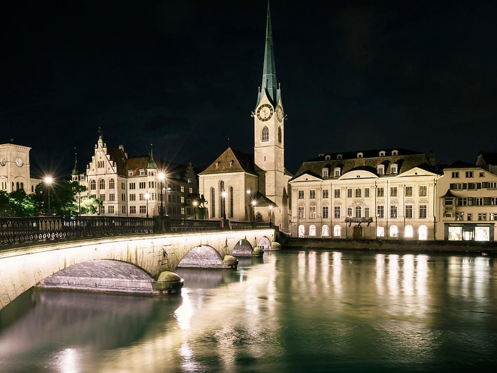 Zurigo di notte con il Muensterbruecke KEYSTONE/CHRISTIAN BEUTLER sda-ats