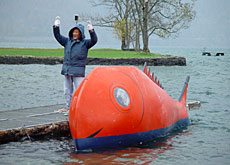 今回の航海のために作られたボート「Why not?」号は、長さ6メートル、幅1.2メートルで赤いさかなの形をしている。10年前の黄色いボートよりコンパクトに仕上がった。渡航費用は総額でおよそ500万円。形がユニークなため、人件費など10年前よりコストはかかったが、在日スイス観光局などの援助も得ることができた。