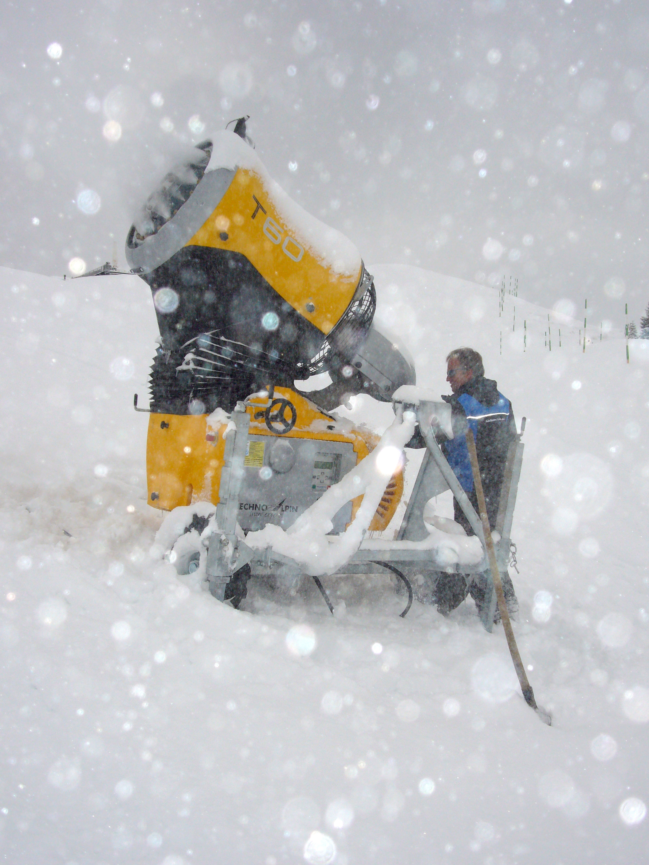 現在は、可動式のプロペラスノーマシンと固定式のスノーガンを使ってほぼ全域で人工雪を降らせている。アレンバッハ氏が担当しているジレレン ( Silleren ) 地域には50メートルおきにスノーガン1基が置かれ、すべて合わせると100基以上になる。
