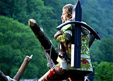 石弓を背中に背負い、スイスの英雄ウイリアム・テルがはじめてリュトリの丘に登場した。(ミラン・シヤシスキ撮影) Milan Schijatschky