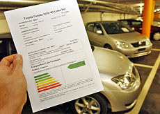 エネルギーラベルは電化製品や車などについており、左側一番上にある短い緑の矢印Aが最高のエネルギー効率を、一番下にある長い赤の矢印Gが最低のエネルギー効率を表している。そして、ラベルの右側に大きく記されているのが製品自体のエネルギー効率だ。