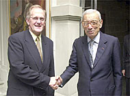 前の国連事務総長で現在は仏語国国際機構(OIF)事務総長を務めるブトロス・ブトロス=ガーリ氏は25日、フランス語と複合文化の重要性のプロモーションのためスイスを訪問しベルンでジョセフ・ダイス外相と会談した。