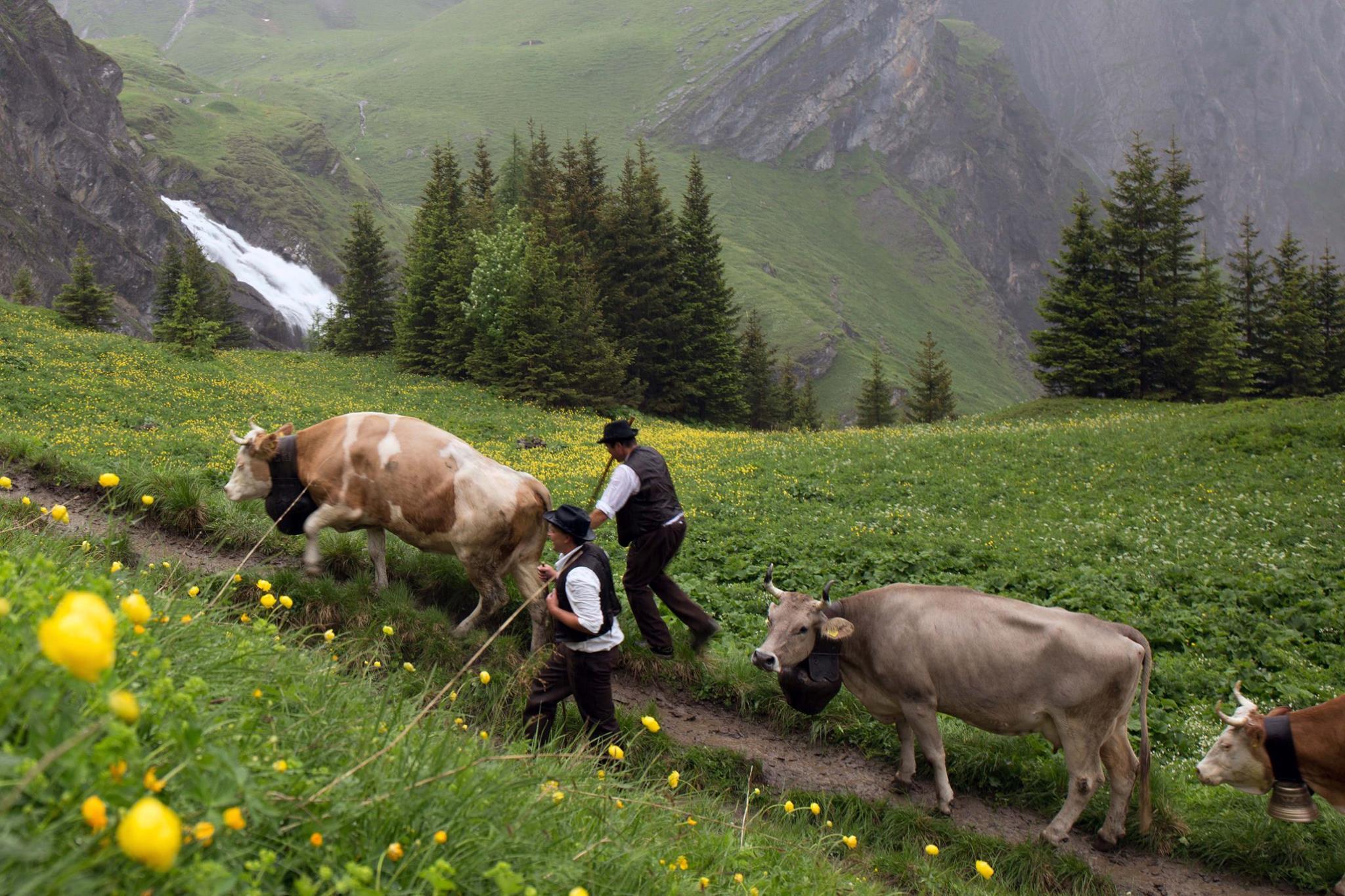 ベルン州の自治体アデルボーデンにある高原外部リンクへ続く道は長く、急で狭い。500頭の牛と牛飼い達がカウベルを響かせながら慎重に歩みを進める。急な岩場と小道を600メートル登らなければならないため、出発は夜明けだ。彼らは山上の放牧地で10~12週間過ごした後、また谷へと下りていく。