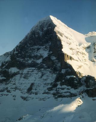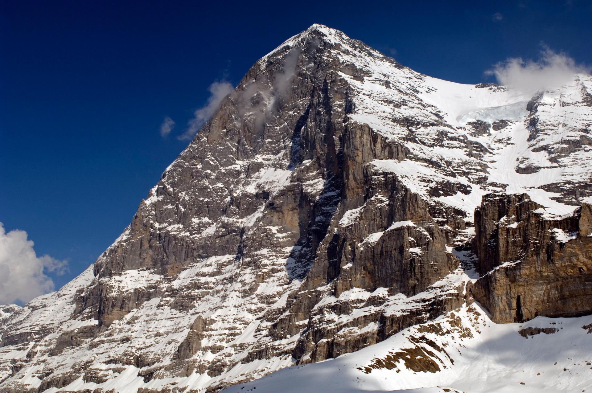 アイガー北壁。高さ1800メートルの岩壁。グランドジョラスの北壁、マッターホルン北壁とともにアルプスの三大北壁の一つとして知られる
