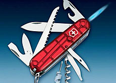 スイスアーミー・ナイフは、スイスの兵士が持つ携帯ナイフ。スイスを訪れる外国人にとって、「崇拝の対象」とでも言える人気の高い商品。買うか買わないかは別としても、必ず観光客が手にする。スイスで生産されるアーミーナイフの8割は観光客の手を通して、もしくは直接外国へ輸出される。