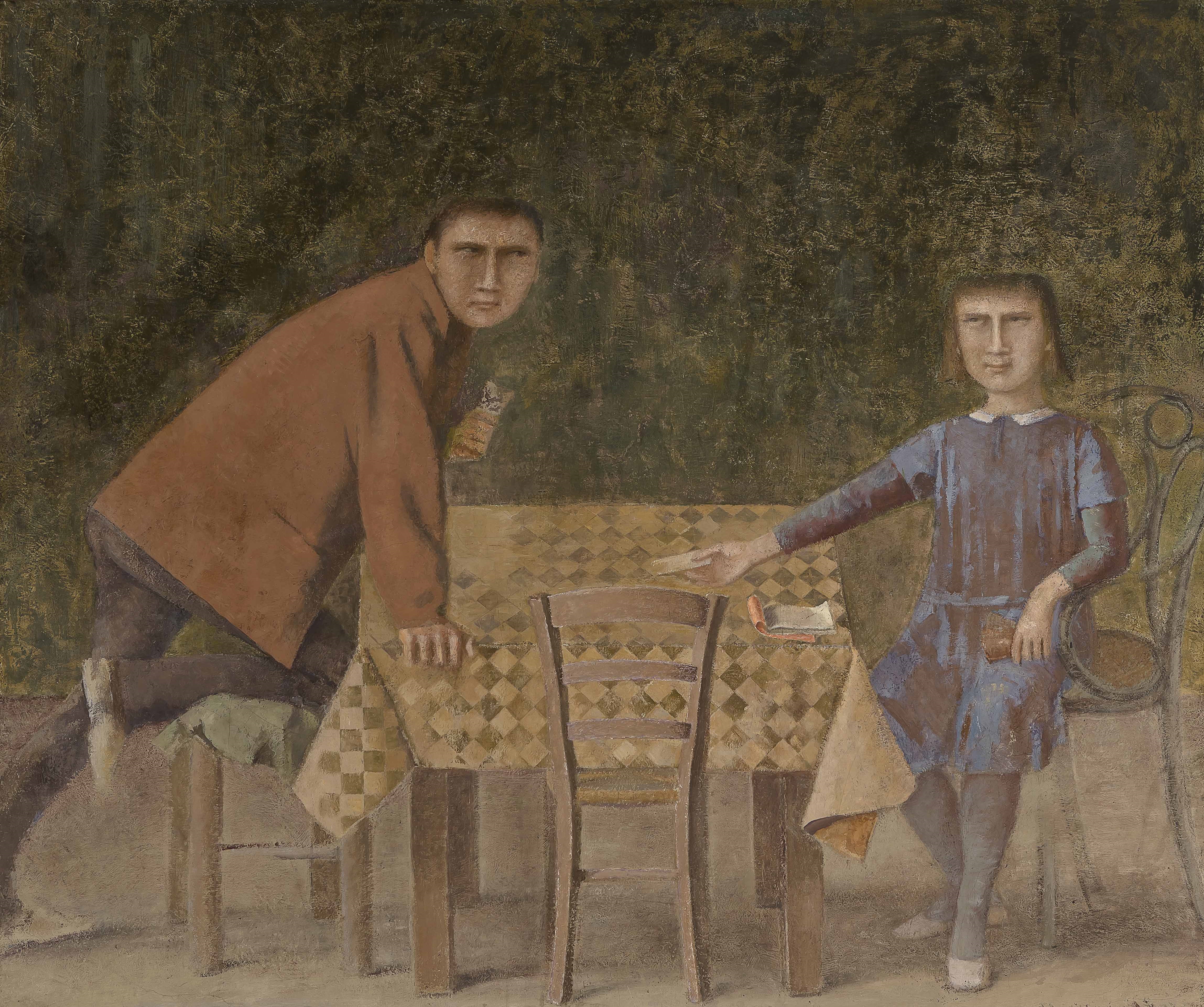 節子・クロソフスカ : 挑発的なものは若いときの1940、50年代に多い。60年代や77年以降スイスに住む時代からは、壁画風になります。主題がどんなに挑発的なものでも、生々しいエロチシズムより、もっとある型にはまった儀式的ともいえる壁画風なものになっていった。