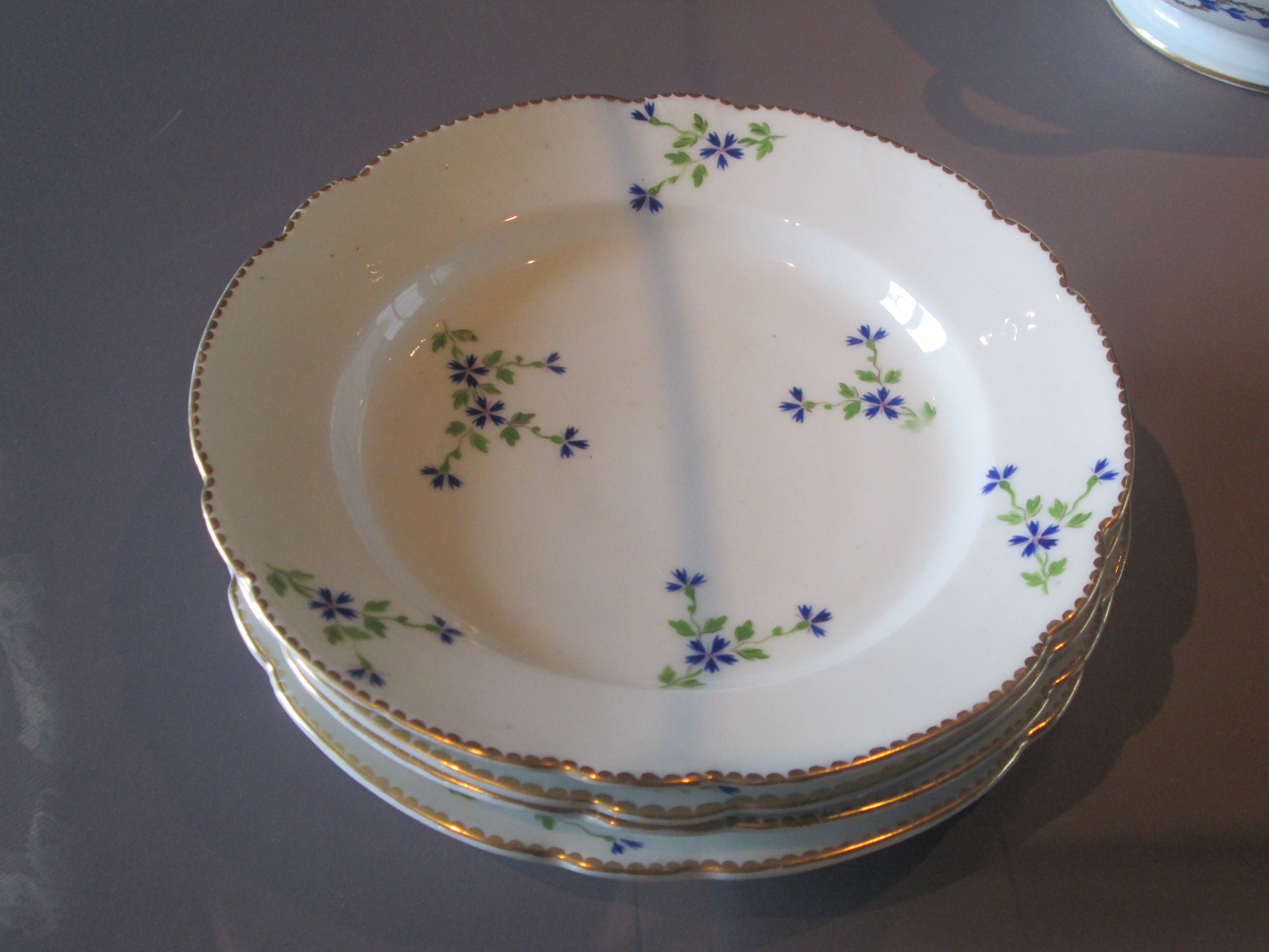 セーブル窯の第1ロココ時代第2期の装飾スタイル、パリの窯業者が好んだ人物画スタイル、チューリヒ窯の風景画スタイルなどがニヨン窯の作風でありニヨン焼として親しまれています。小花散らしや花綱など可憐なデザインの多いニヨン焼は今日でも大変人気があります。ル・ブルエ(矢車菊)とニヨン・ローズ(薔薇)と呼ばれる2つのパターンは、ニヨン焼の絵付けを習う人が最初に取り組む絵柄です。特に矢車菊はルイ16世王妃が好んだデザインで、ニヨン焼の場合、赤紫色の矢車菊と青色の矢車菊の2種類の絵付け方法があります。1枚の花弁を描くのに細い筆で3ストロークの筆さばきを必要とする細かい作業ですが、矢車菊の花をよく観察すると花弁の先が3つに分かれていてニヨン焼の描写が正しいことがわかります。今ではニオン窯は存在しませんが、その可憐で愛らしいニヨン焼のデザインはこれからも多くの人を魅了していくことでしょう。