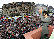 2006年10月、ロジャー・フェデラーが地元バーゼルのトーナメント「スイス・インドア」で初優勝を飾り、会場のザンクトヤコブ競技場はスイスの国旗とファンの熱狂的な声援に沸きかえった。