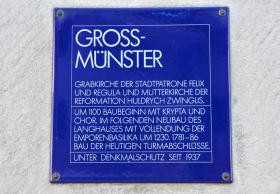 グロスミュンスターはプロテスタントの教会で、聖堂内はロマネスク様式で形成されている。13世紀から14世紀の間にかけて建設された。高くそびえる2本の塔は15世紀に建立された後に1度火災で焼失し、18世紀に再建された。