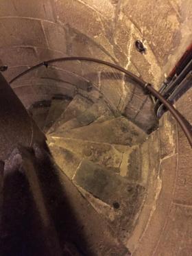 1階の奥手で4フラン(約420円)を支払い、187段の狭い階段を上って行く。上へと上るにつれ、ところどころに木の階段も現れるのだが、上り始めは人が1人ようやく通れる程の狭い石段が続く。