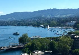 町の中心を流れるリマト川、聖ペーター教会とフラウミュンスターも目の前だ。別の窓からはチューリヒ湖、反対側にはチューリヒ大学と、高台にある住宅地も見渡せる。こんなにあらゆる角度から町の中心を一望できる場所は、なかなか思い当らない。