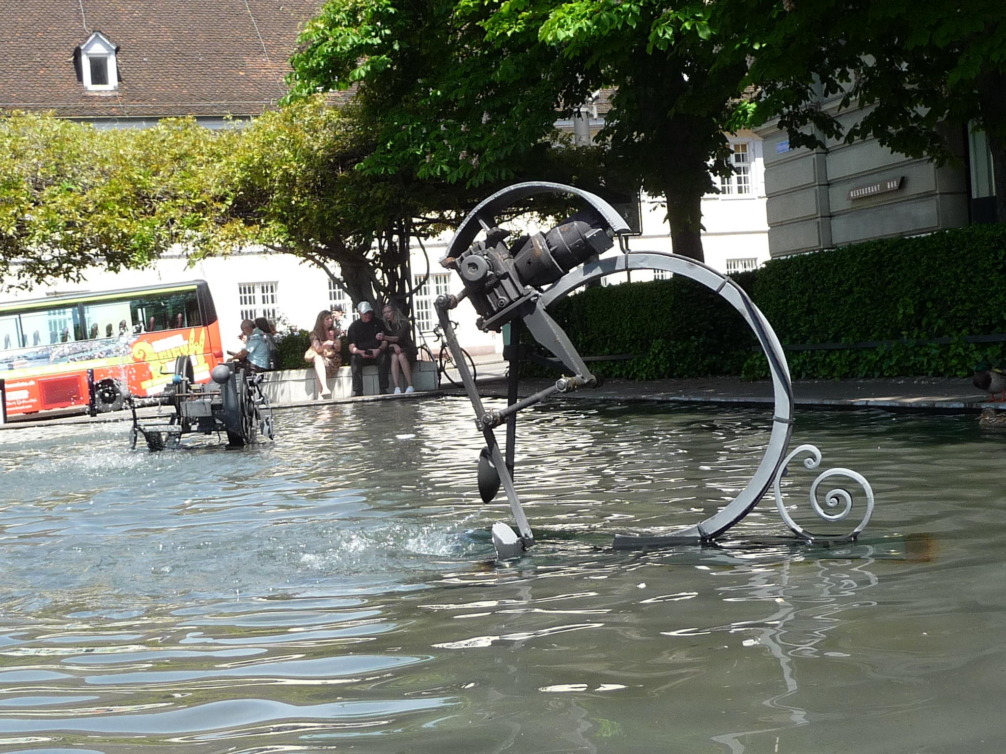 まずシアターバーゼル横の、ティンゲリーの泉にやってきた。動く彫刻で有名な芸術家ジャン・ティンゲリーの作った噴水で、観光客が必ず写真を撮るので、少し長めに停車してくれる。