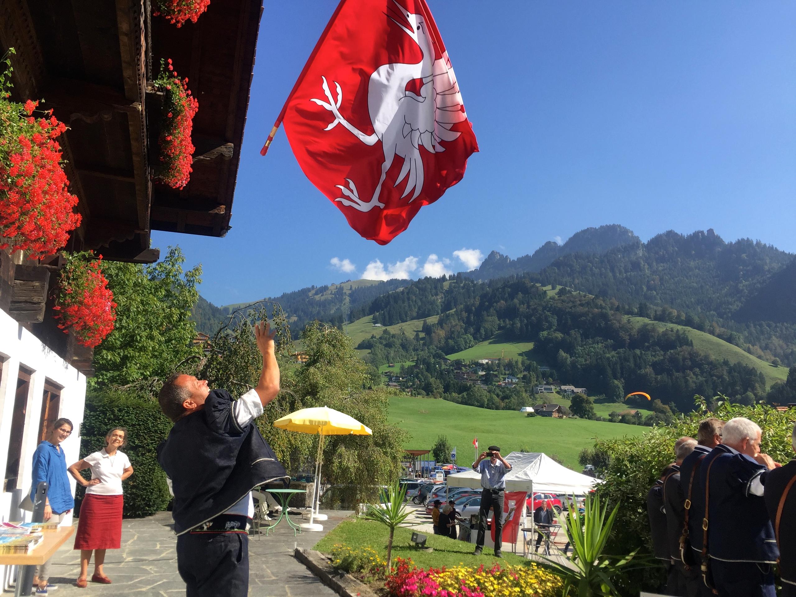 フリブール駅からバスに乗ってシャルメーに着くと、オーガナイザーである村人が見物客にパンフレットを配っている。何時に誰の牛たちが村の中心に到着するのかをリストアップした牧下りの時刻表だ。予定通り最初の群れが9時半にやって来た。