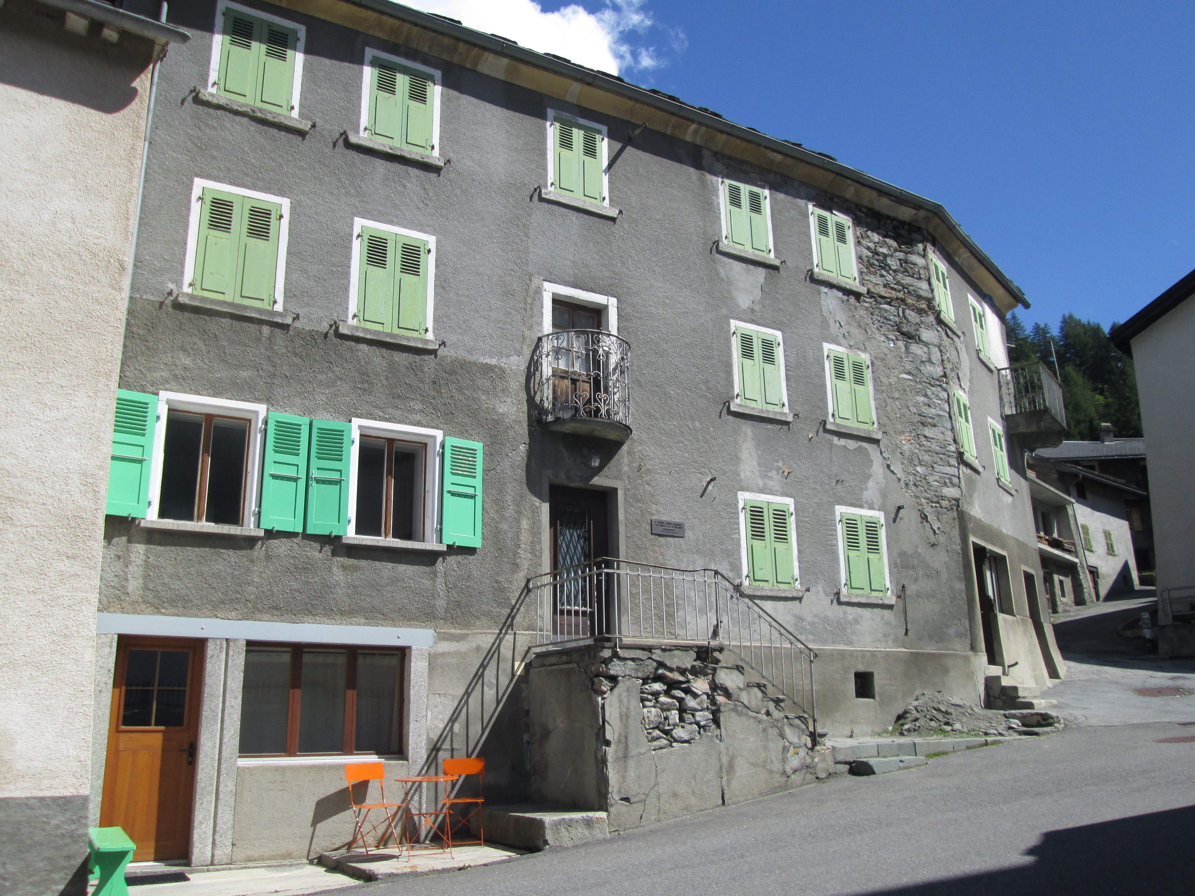 人口200人足らずのこの小さな村にはナポレオンが宿泊した建物が今も残っていて、「第一統領ボナパルトここに投宿する。1800年5月20日」と記された記念額が正面玄関の右横にあります。当時は宿屋でしたが、現在は民家になっていて建物の中から家族団欒の声が聞こえてきました。