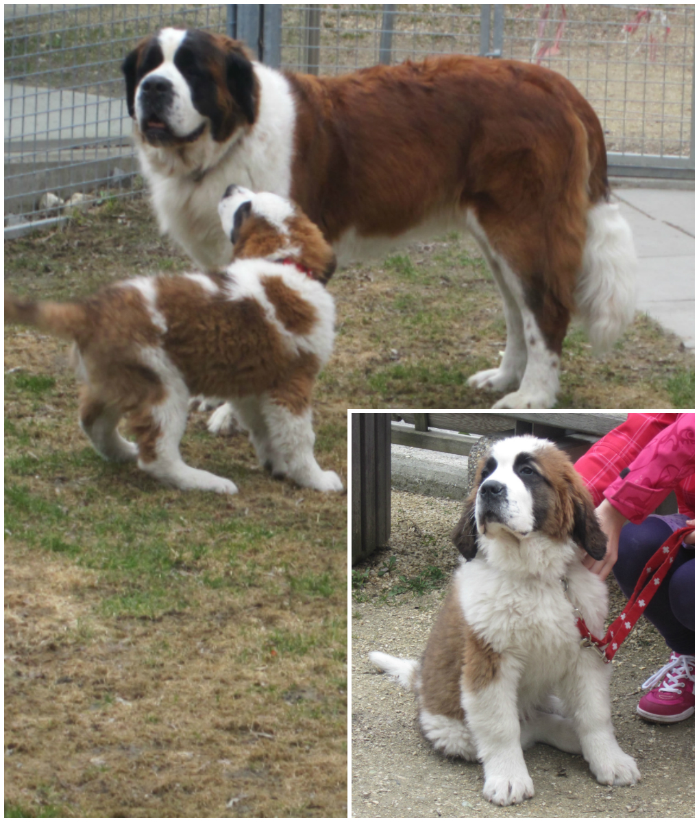 セント・バーナードという犬種は元からあるわけではなく、ローマ軍が遠征中にアルプス付近に置いていった犬が独自の発達を遂げ、姿形が変わっていったらしい。この軍用犬はアルペン・マスティフという種として作出され、後々のセント・バーナードの原種となった。