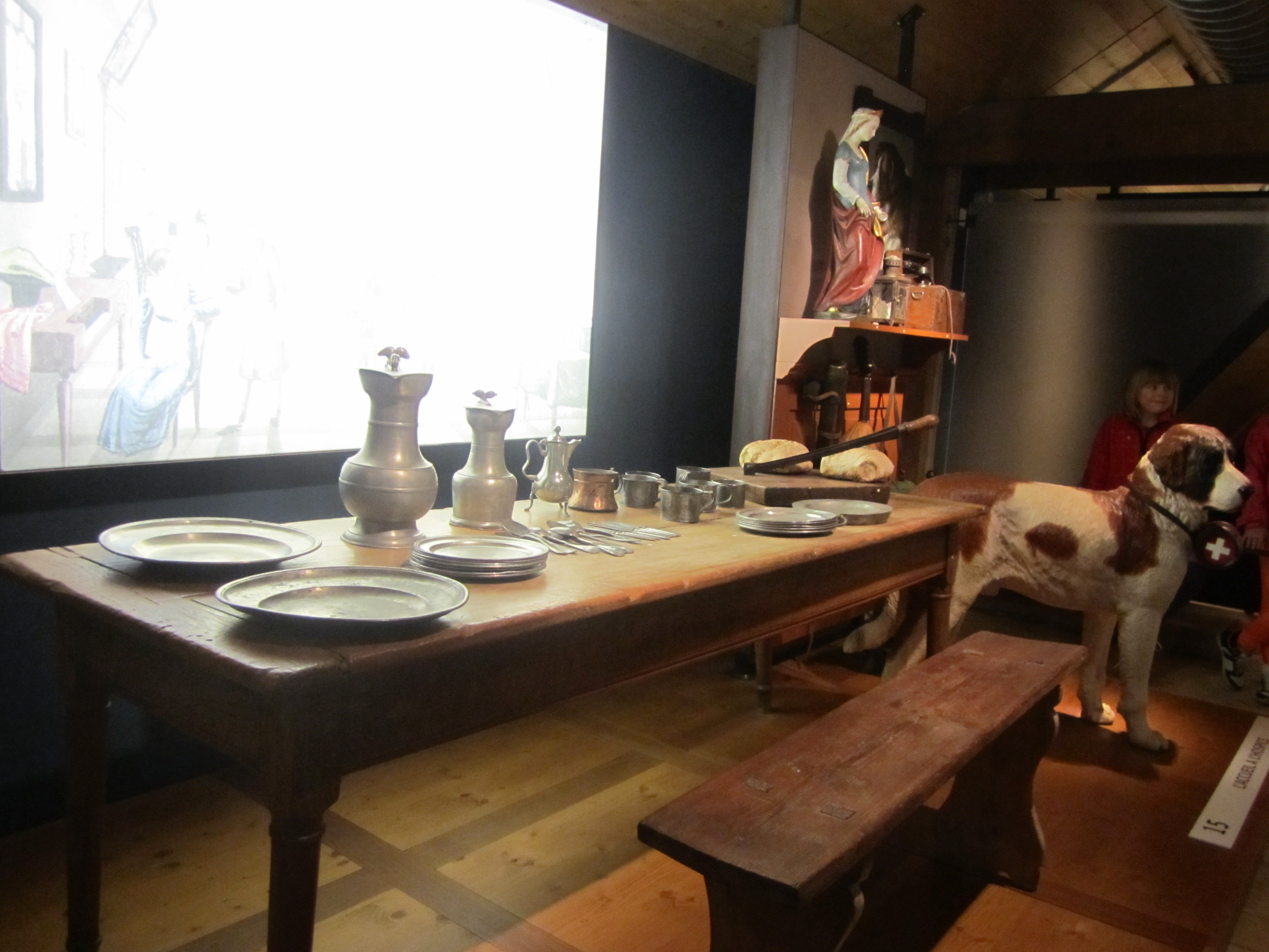 古代世界に思いを馳せた後は、スイスを代表する犬-セントバーナード犬に会いに、博物館に入った。ここでは、セント・バーナード犬に関する歴史が学べると同時に、犬の飼育場が見学できる。係員に申し出れば、犬を柵から出してもらい、撫でたりその場で遊んだりすることができる。戸外での犬との散歩は夏の間、受け付けているそうなので、博物館に問い合わせしてみるとよい。