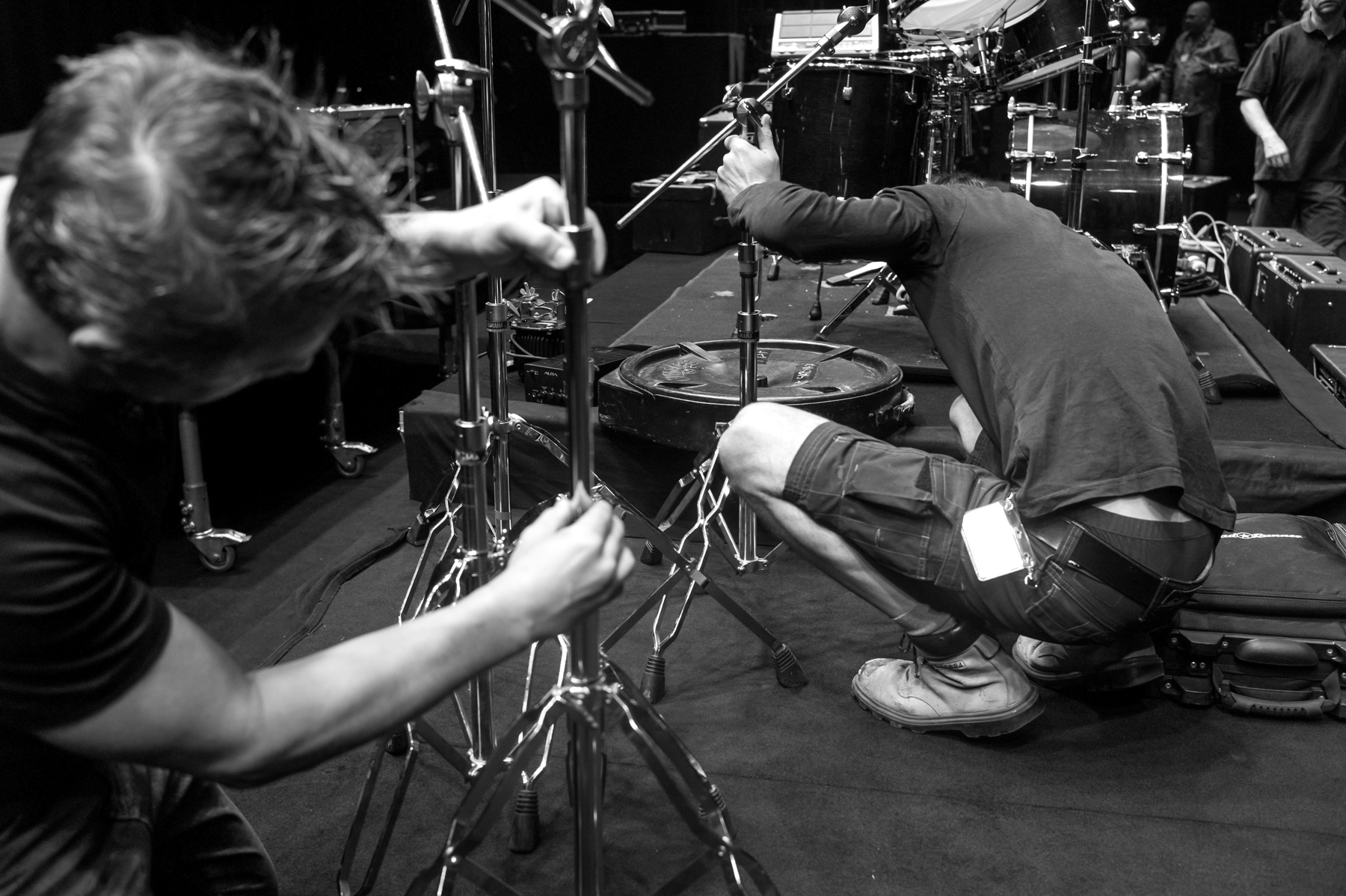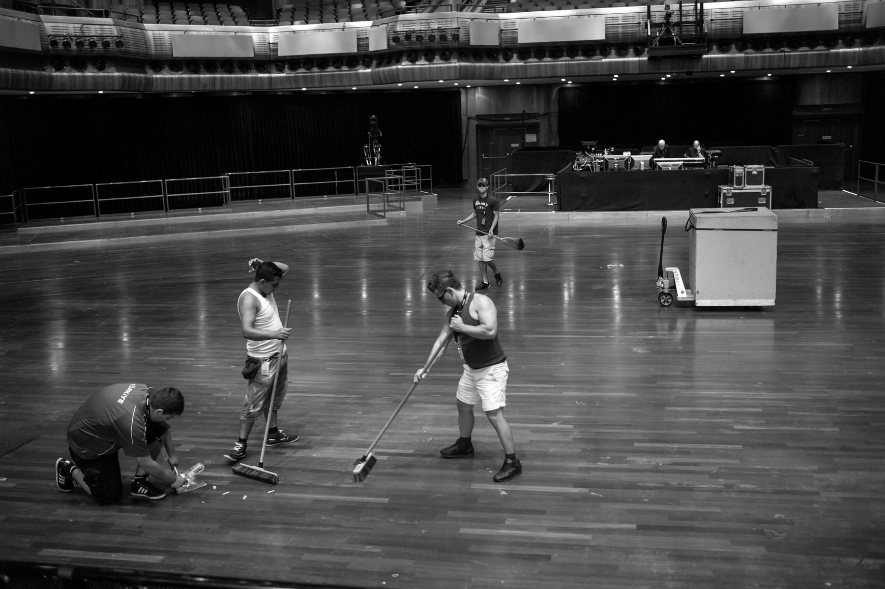 写真家は普通、舞台に立つスターの写真を撮る。フランスの著名写真家ギィ・ル・ケレックさんは2012年のモントルー・ジャズフェスティバルで、リハーサル、サウンドチェック、舞台作り、清掃など、舞台裏をカメラに収めた。