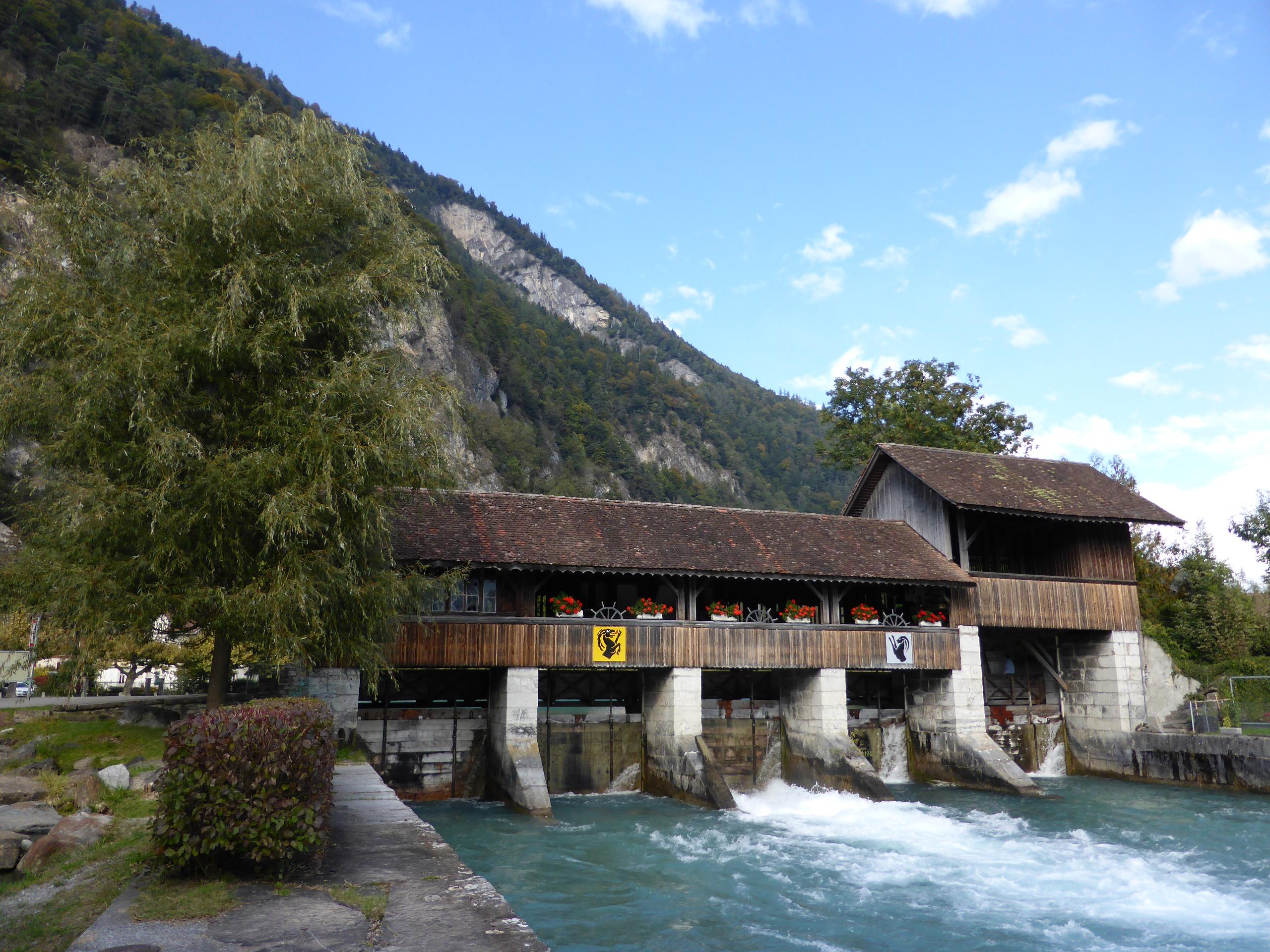 午後からは「もしも雨天だったら」シリーズ。ニーダーホルンからの下山後、ベアテンベルクロープウェイ駅のすぐ横から出ているインターラーケン西駅(Interlaken West)行きのバスに乗り、アーレ(Aare)川を渡る直前の停留所で降りた。ここが、この川を挟んでインターラーケンと隣接する町、ウンターゼーン(Unterseen)である。