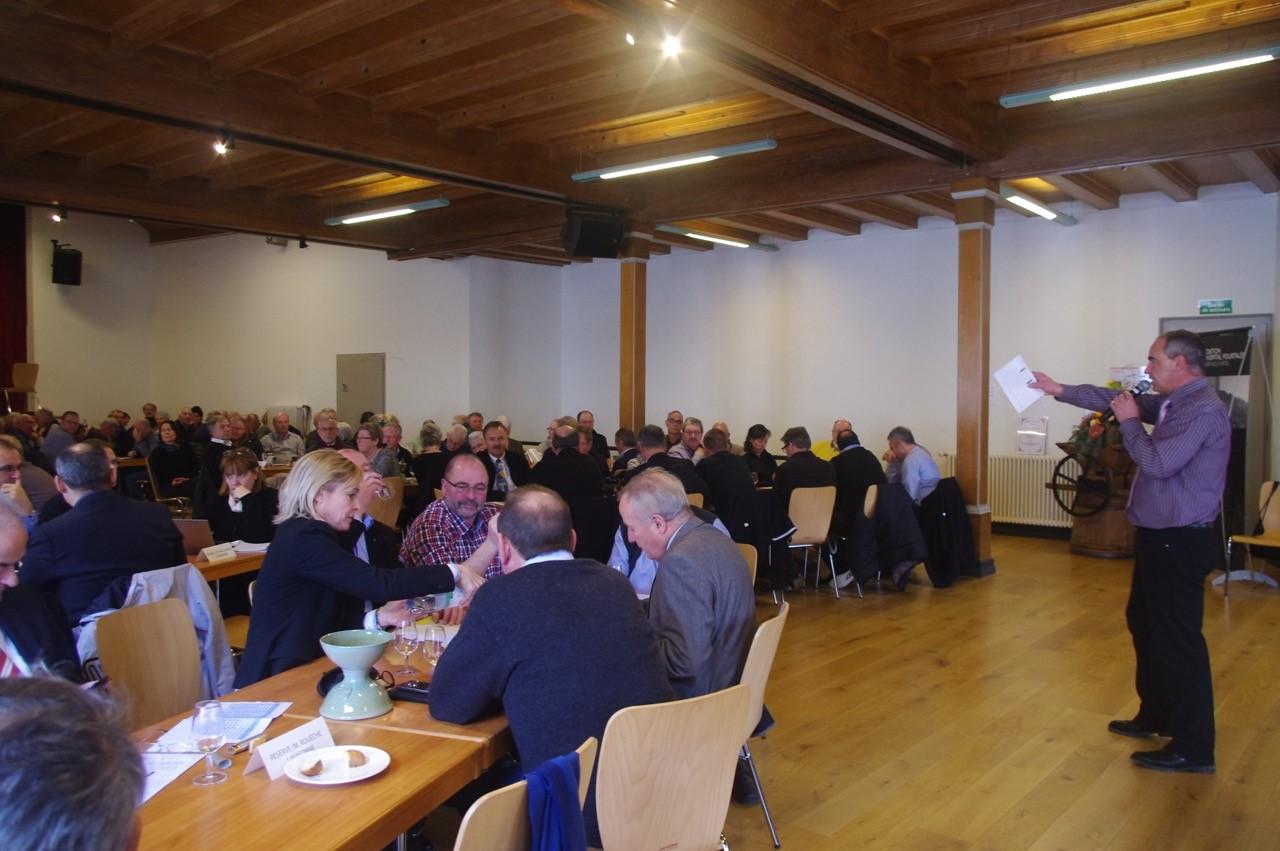 オークションでは白(シャスラとシャルドネ)、ロゼ(オイドペルドリックス)、そして赤(ピノノワール)の合計5万リットルが、樽ごとに25から2000リットルのロットに分けられて競りに掛けられた。気になるお値段の方は、例えばシャスラの平均終値は1リットル6.68スイスフラン(約760円)だった。一年掛けて丹精して創り上げたワイン。倉で試飲した私を感激させたそのワインが1リットルたった760円なのだ。シャルドネは高値がついたがそれでも平均終値は12.75スイスフラン(1450円)。私はあの感激のシャスラを買いたかった。でも生まれて初めてのオークションに怖じ気づいて手があがらなかったのだ。来年は必ず!と心に決めた。