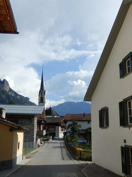 後方のカトリック教会が視界に入る位置で、プロテスタントの教会の正面に掲げられた建設年「1694」の文字を眺める度に、これは実にスイスらしいエピソードだなとしみじみと思う。山の上の小さな村で起こっている小競り合いは、他の国ならどこか中央にいる知らない支配者にどちらかが罰せられておしまいになるだろうが、ここでは住人たちの民主的な意向が一番尊重されるのだ。