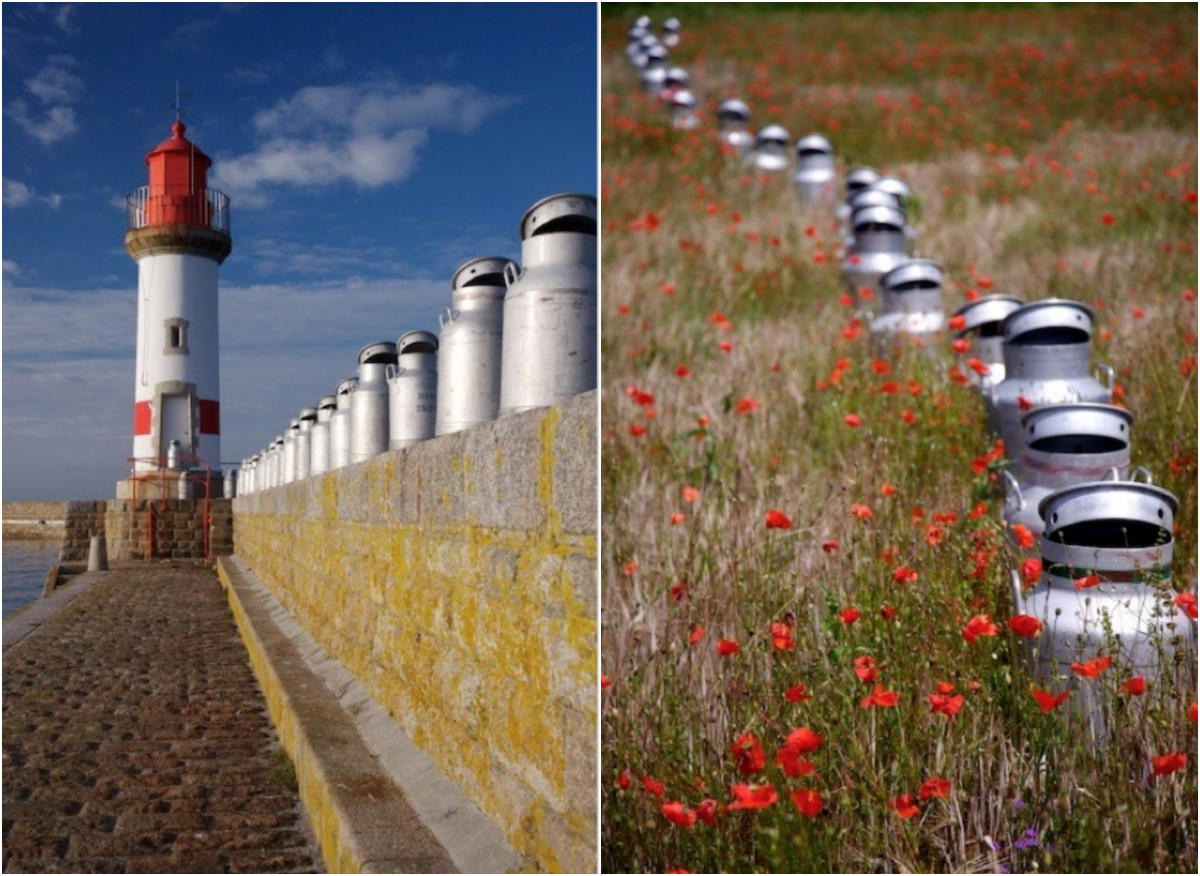 ジェラールさんはBidon San Frontier(国境のない缶)と名付けた牛乳缶ランド・アートのパフォーマンスを主にスイスやフランスでやり写真を撮ってきた。