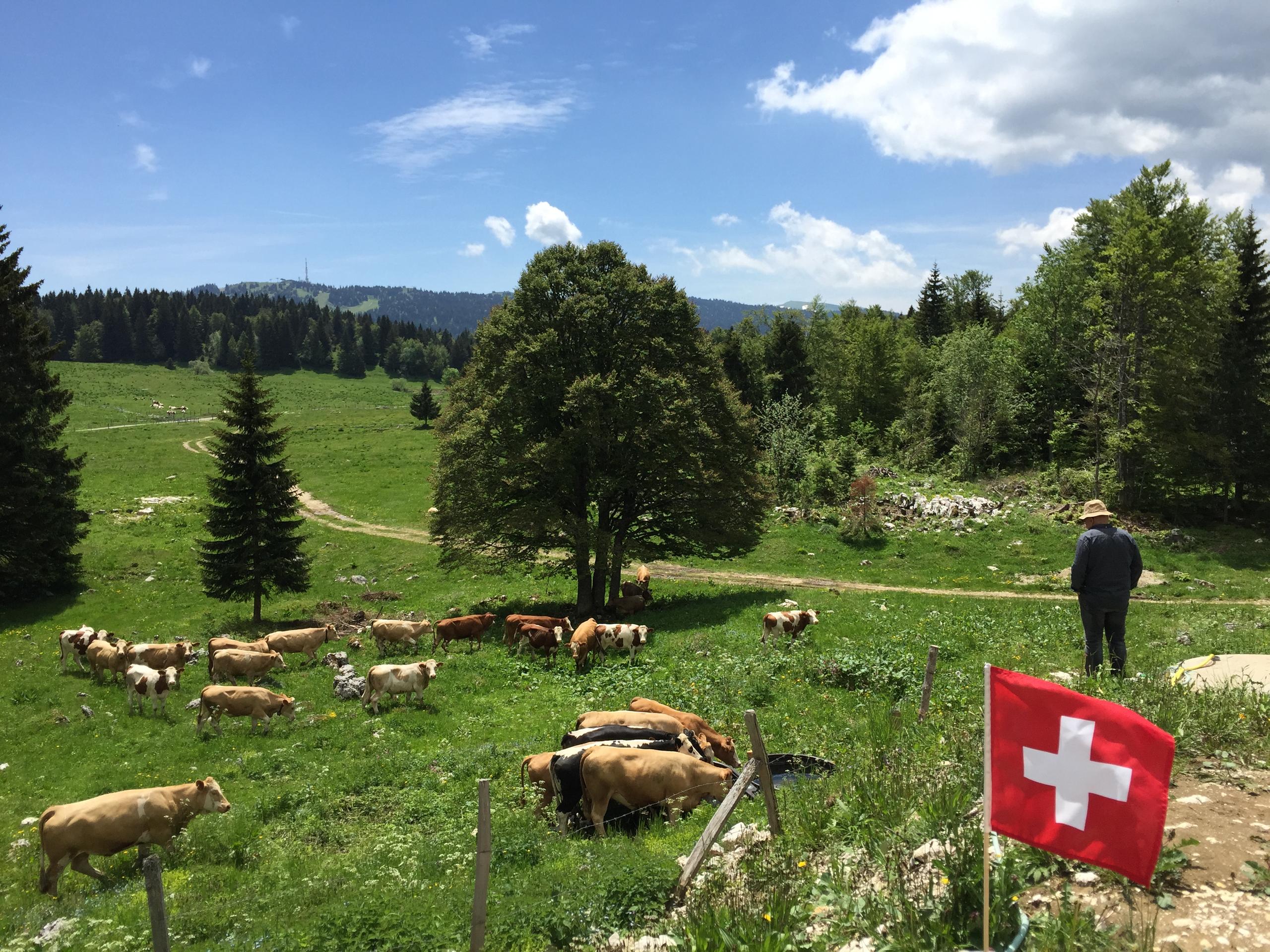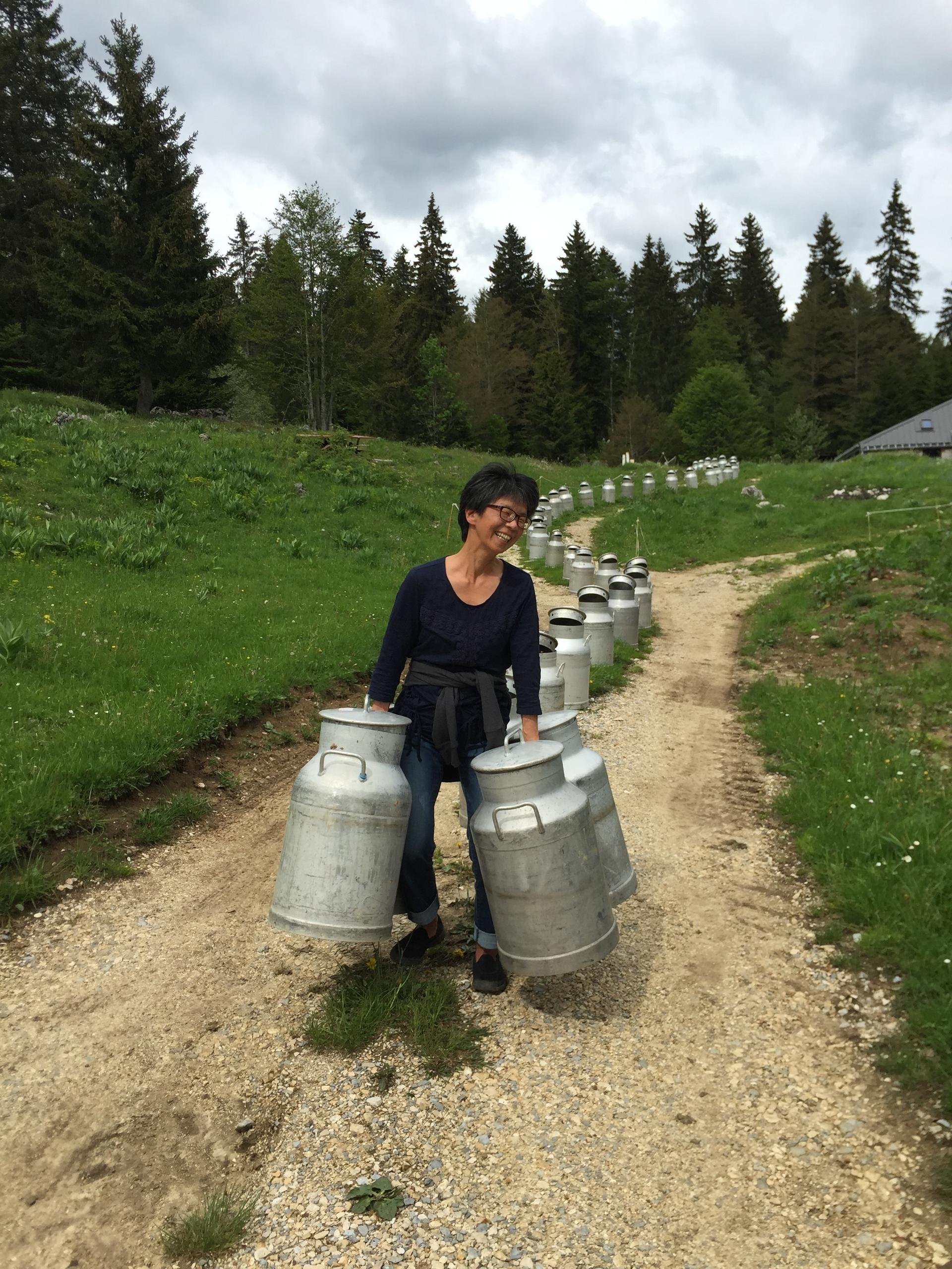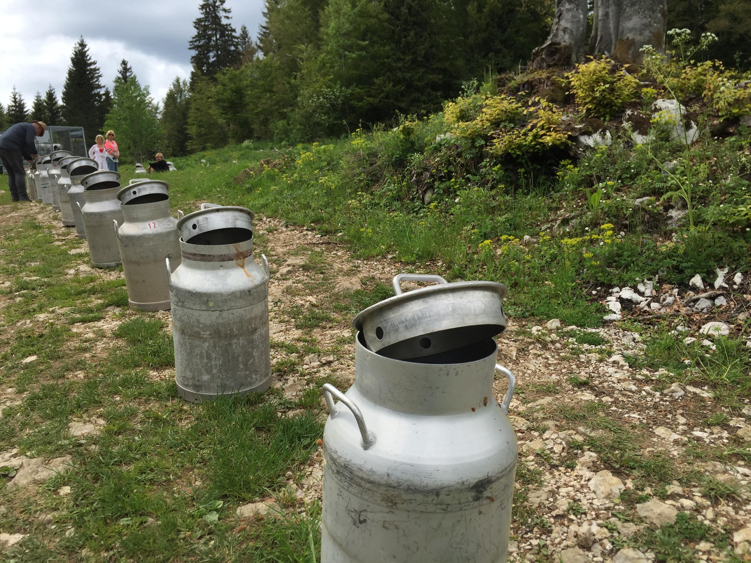 スイスとフランスにまたがるジュラ山脈に牛乳缶でランド・アートを創る写真家がいる。気持ちよく晴れ上がったある日、彼が夏の間暮らす山小屋に出かけてインスタレーションを手伝った 。