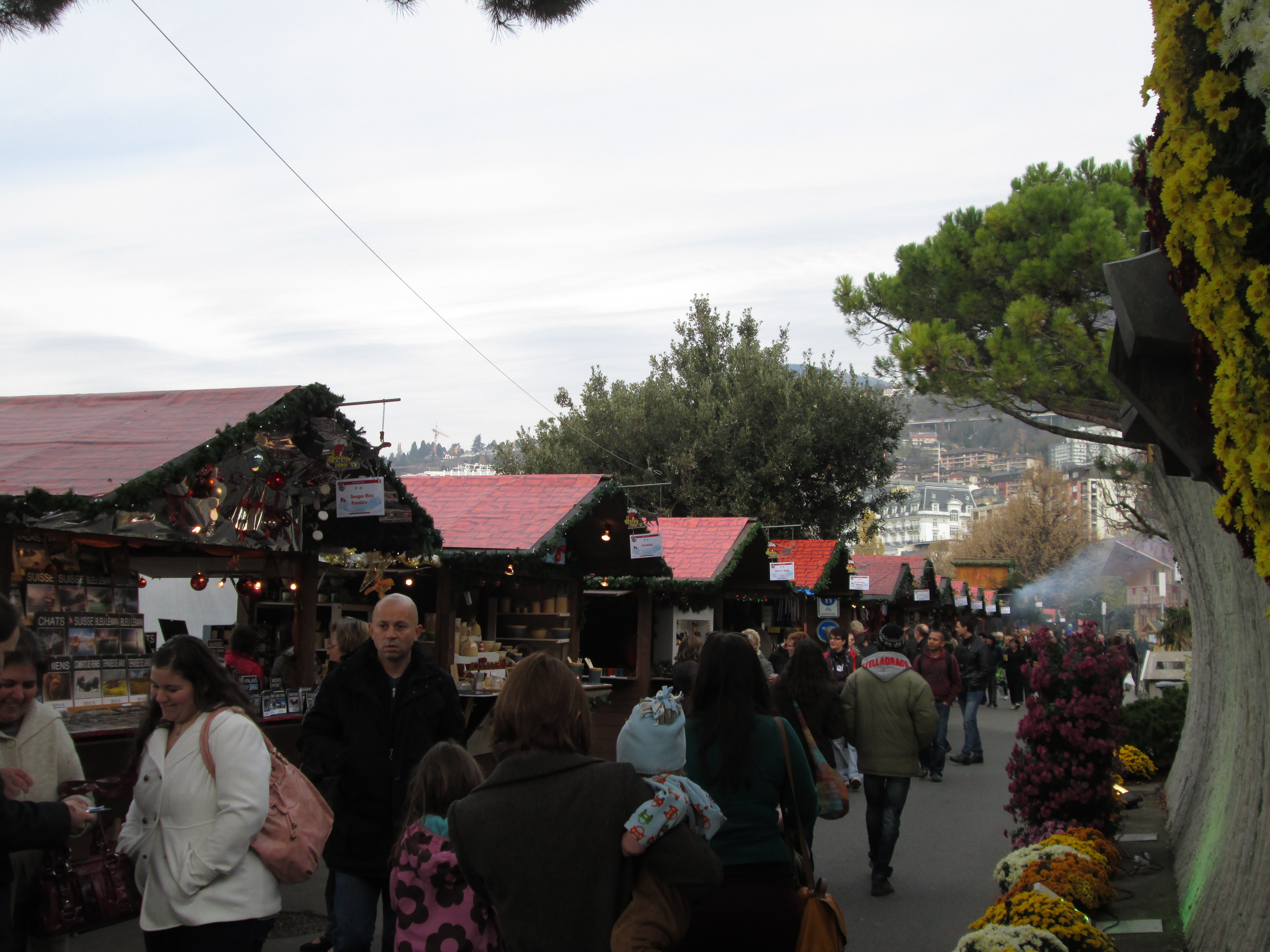 スイス南西に位置するヴォー州(Vaud)で有名なクリスマス・マーケットと言えば、なんと言ってもモントルー(Montreux)のマルシェ・ド・ノエルでしょう。2013年第19回を迎えたこのクリスマス・マーケットは、11月22日から12月24日までの33日間にわたり開催されます。150軒ほどの山小屋風の店が大通りや湖畔沿いに並ぶと、モントルーの町は気温が低く寒くても、クリスマスならではの暖かい雰囲気に包まれます。身体を温めるのにぴったりの飲み物、ホット・ワインを片手にお店を巡ります。