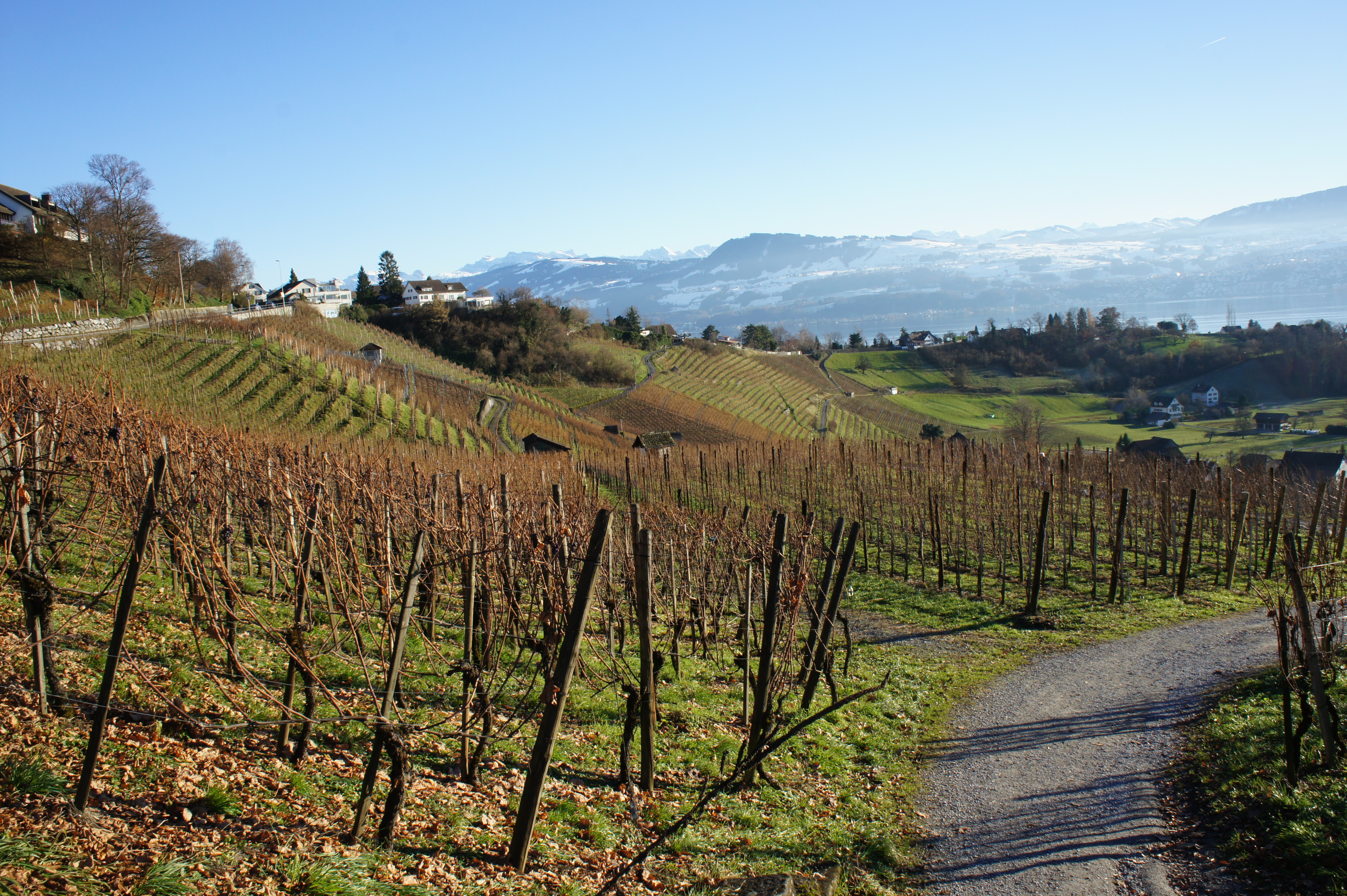細長い三日月型のチューリヒ湖岸の両側には、同じような規模の町が点在する。チューリヒ地区で「ゴールド・コースト」と呼ばれている湖の沿岸では、他地域に比べると日照時間が長い等の理由により、古くからワイン造りが盛んで、春から夏にかけての湖岸はその葉を茂らせた緑いっぱいのブドウ畑の景色が美しく眩しく、秋にはそれらは光に包まれ金色に輝き、そして冬には降り積もった雪で真っ白に覆われる。