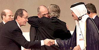 6日間の交渉の結果、2年前シアトル会合で途上国と先進国の利益の衝突で失敗に終った医薬品の特許権に関する合意がまとまった。パスカル・クシュパン経済相は「シアトルでの失敗を乗り越え、経済成長の再起動のための合意に達したことに大変満足している。」と述べた。