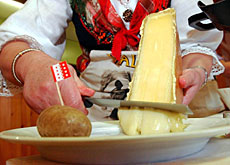 丸いチーズを半分に切って、火であぶって溶かす。ジャガイモとピクルスで食べるチーズのラクレットは、寒い冬に好まれるスイスの郷土料理。ラクレットと名づけられるのは、ヴォー州産のみとする決定が連邦農業局によりこのほど、下された。
