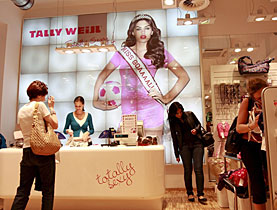 デザイナーは都会のディスコやビデオクリップ、ファッション雑誌からアイディアを展開させるという。こうして国際的なファッショントレンドは、数週間でショップのハンガーに吊るされるというわけだ。タリー・ウェイルの商品は徹底して低価格。カタログは作らない。どんどん新しい商品が導入されるため、意味がないのだ。