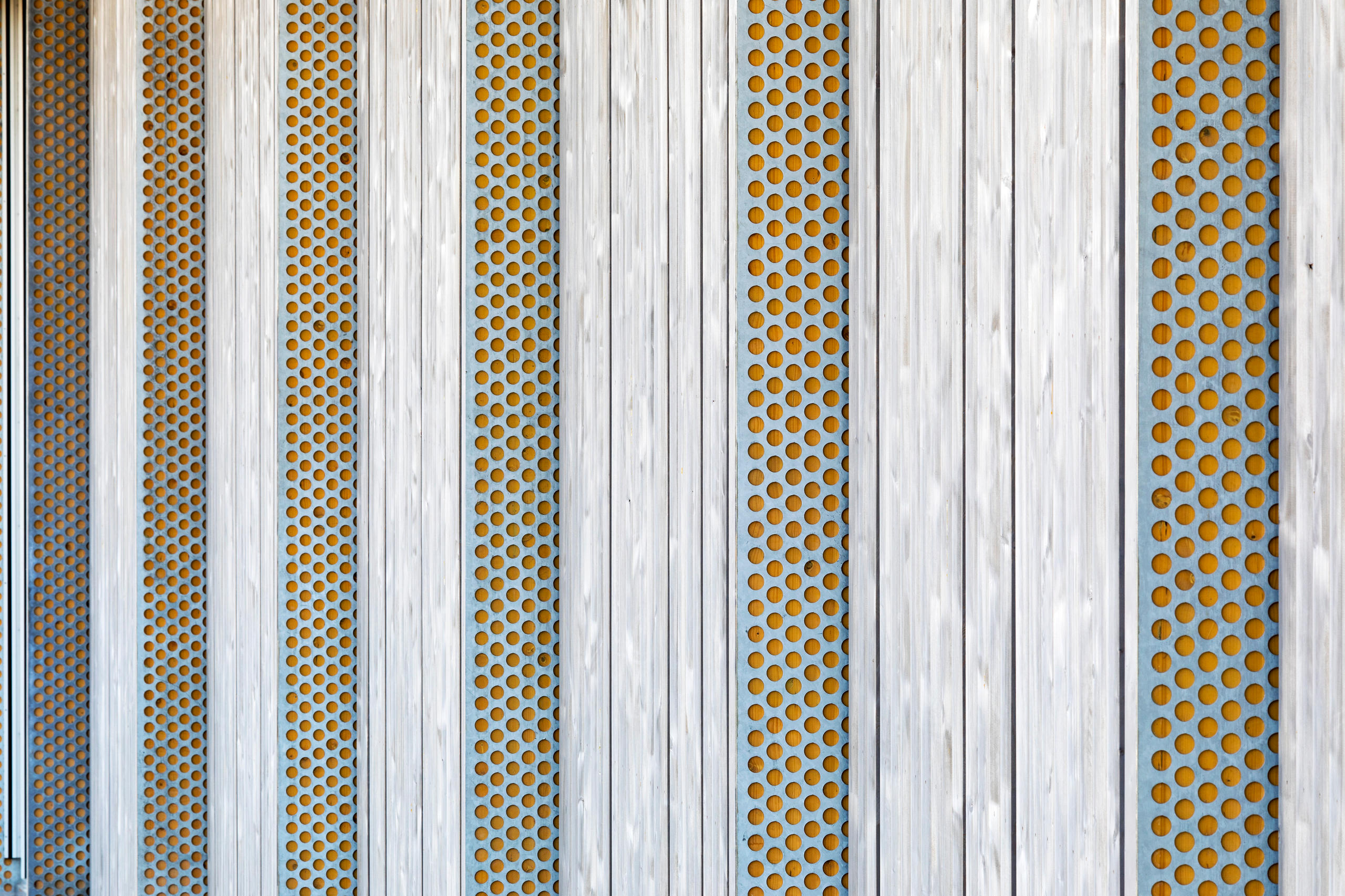 約10センチの厚さの木をスチールのパネルで補強して柱や梁に使っている。これは、薄くまたスチールに孔があるため、建物全体に透明感や軽さを与える。また、この中に雨どいを入れることにも成功。「今回、いつも一番苦労する雨どいをうまく解決できた」と隈研吾さん Alain Herzog, EPFL