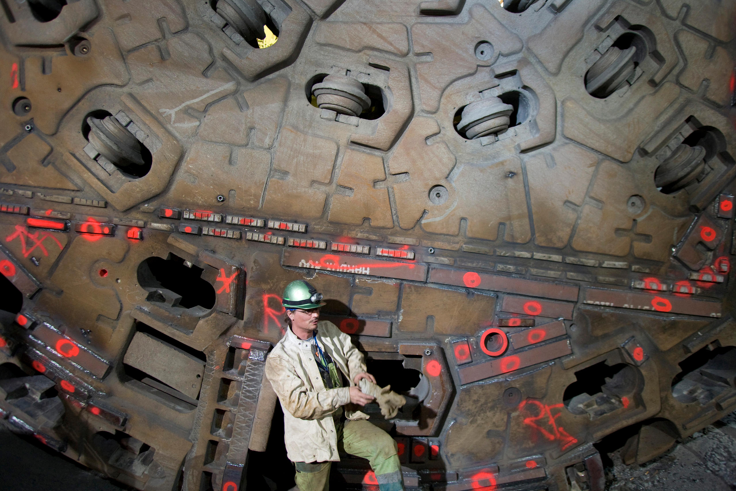 今世紀最大の建設現場、鉄道建築家の傑作、スイスがヨーロッパにもたらした宝石。ゴッタルドベーストンネルは、あらゆる最上級のものを結集して作られた。だが、何といっても、大半が外国人労働者だった数百人の掘削作業員や技術者たちが、昼夜を問わず17年もの長い間、気温40度近くにもなる過酷な環境の中で作業を続けてきた努力の結晶だと言わざるを得ないだろう。作業は決して楽なものではなく、9人の死者も出た。swissinfo.chのカメラマン、トーマス・ケルン記者は2009年、地中深くで汗とプレッシャーの中で仕事をする作業員たちを取材した。