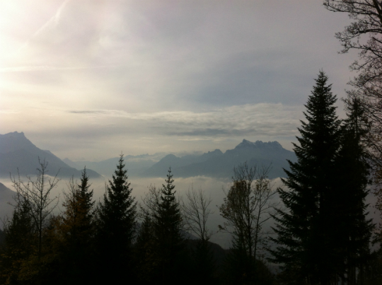 季節が秋から冬へ移る頃、ヴォー州レザン(Leysin, Vaud)では雲海が見えます。レザンは標高1,263mに位置しているため、麓に横たわるローヌ谷の放射冷却によって起った雲海を見下ろすことができます。レザンからは、この幻想的で美しい景色を楽しむことができても、このような日、下のローヌ谷では、霧が立ち込めて視界が悪く、寒く暗い日を過ごすことになります。