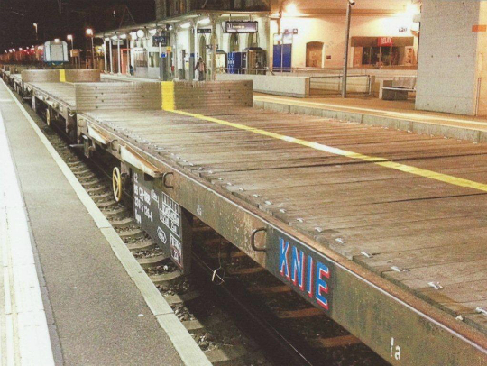 規模の大きい、このサーカス団は、各地へ巡業する際の移動方法を、昔から工夫しています。1926年までに、サーカス機材、宿舎、事務所や動物たちを移動するための80台を超えるワゴン車を使用していて、そのワゴン車を42両の特別貨物車に積んで、次の興行地へ鉄道輸送していました。現在でも、巡業期間中は、16ヶ国の国籍を数える200名以上のスタッフが就業しているので、大移動に違いはありません。現在の移動方法は、特別仕様の貨物車(写真参照)、動物飼養施設としてデザインされたロード・トラック、そしてキャラバン、という風に昔とは少々異なっています。サーカスを観に行った日、テントに到着するまでに、サーカス団の生活の場となっている駐車場を通り過ぎました。大きな赤いトラック、サーカス団専用の赤いごみコンテナ、台所キャラバン、食堂キャラバン、そして宿舎キャラバンと、小さな生活共同体が出来ていました。サーカス公演のみではなく、巡業先の地域生活を乱さないよう日常生活面においても、細かい配慮が見受けられました。