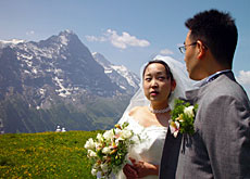 風光明媚な場所で結婚式を挙げたい。こうした希望をかなえるのがベルン州のアルプス地方、グリンデルワルト。日本から年間およそ40組がここで結婚式を挙げる。