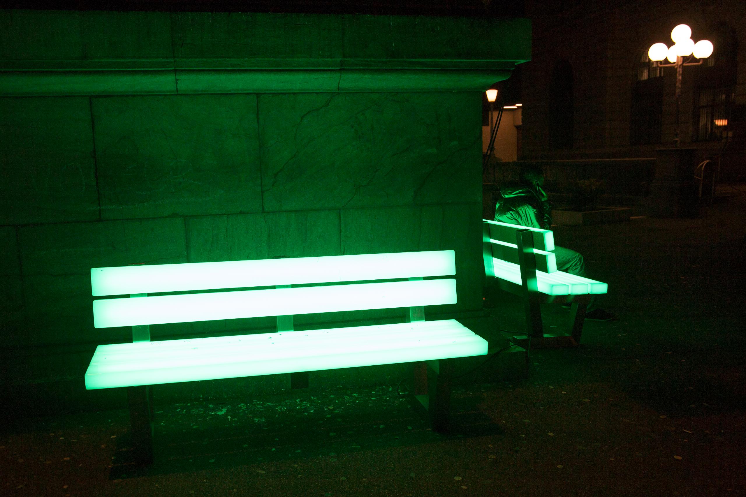 何の変哲もないベンチが暗闇の中で輝き、別次元の様相を帯びる。お決まりのクリスマスオーナメントでもあるスノードームは、その伝統的でありきたりの姿から一転して堂々と輝く。デパートの壁に設置された巨大な白い楕円(だえん)は、スクリーンとなって地元の有名人やごく一般人の顔を映し出し、人々の目を楽しませる。