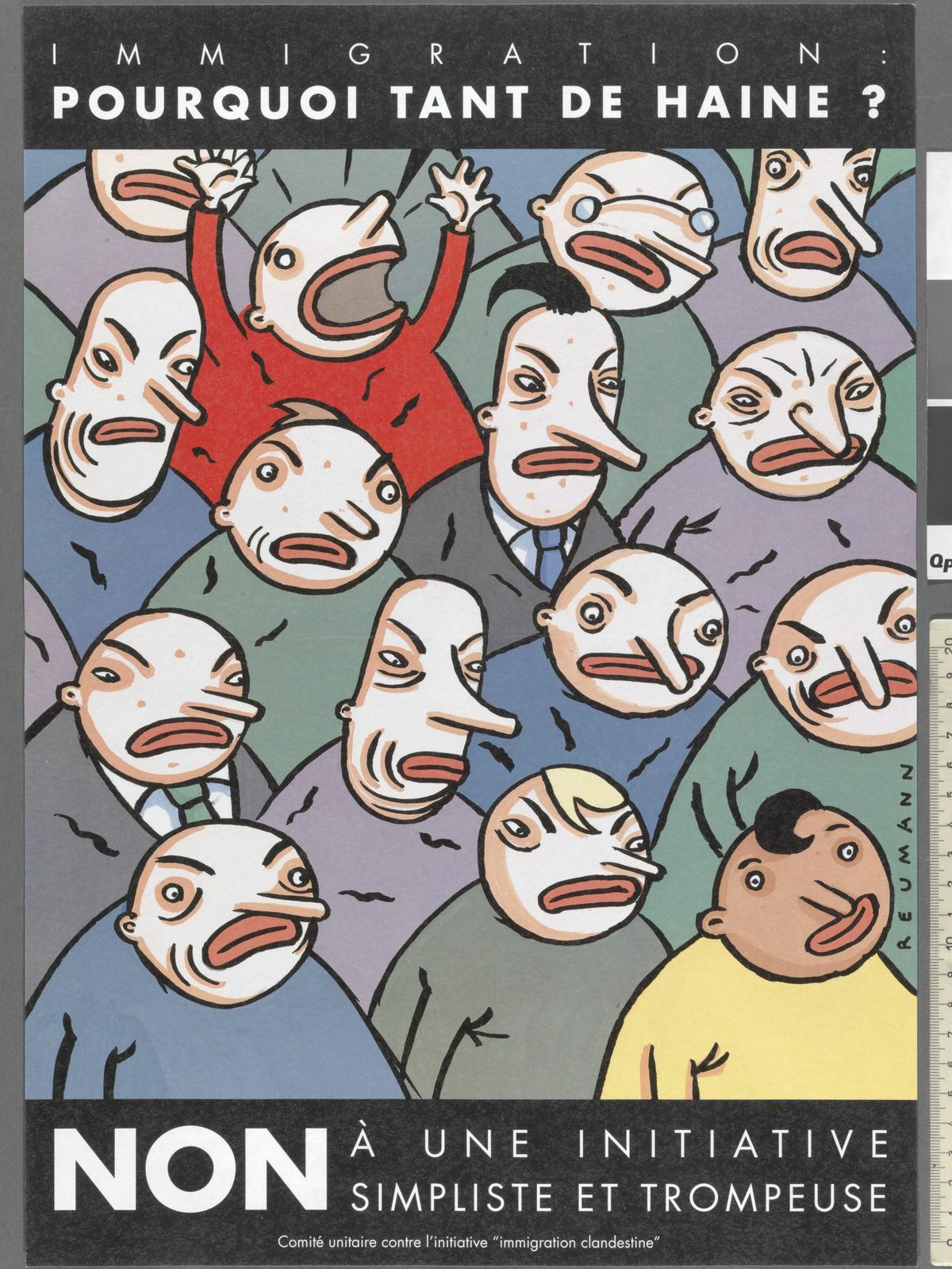 国家のアイデンティティーと安全を守りたいという意思が現れることもあれば、外国人排斥思想や国境開放の必要性を訴えるものもある。政治家は外国人のどこがスイス的でどこがスイス的ではないかと定義づけ、移民政策の法案の是非を訴えるキャンペーンの真ん中に彼らを据えてきた。