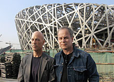 「鳥の巣」を背景に立つ、ヘルツォーク&ド・ムーロン