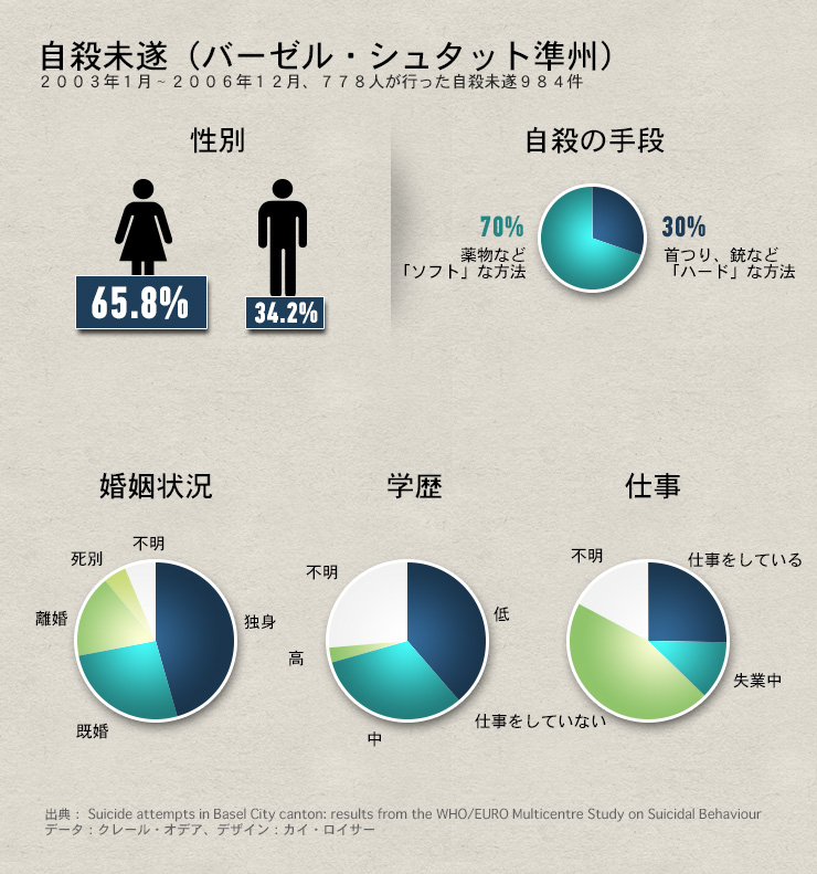 「スイスには、人は自分の人生と体を好きなようにする権利を有するという考え方がある。自殺に対する社会の見方にはこれが影響している。人々は、その行為がじっくり考えた末のものであり、自由意志の表現であって、他人にはどうしようもないものだと考えるのだ。しかしもちろん、そんなことはない」
