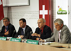 10月21日の総選挙は、国民党出身のシュミット国防相とクリストフ・ブロッハー司法相の信任選挙でもあると国民党は強調する。スイスでは長年、国民党のほか、社会民主党 ( SP/PS ) 、急進民主党 (FDP/PRD) 、キリスト教民主党 ( CVP/PDC ) の4党連立政権が敷かれているが、国民党内では、同党出身の2人の大臣が不信任となれば、連立政権から離脱することが、全党代表者会議で承認された。