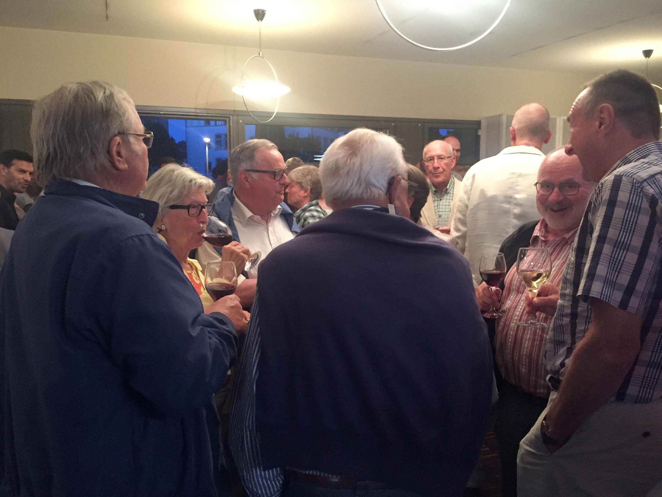 タウンミーティングでは通常、終了後に自治体から参加者に軽食と飲み物が振舞われる。市民のつながりが感じられる時間だ。ハム入りクロワッサン、塩気のあるチーズケーキ、ワイン、ビール、フルーツジュース、水が提供され、参加者は自由に飲食できる。彼らはとても楽しそうだ。ロビーには参加者全員が入れるスペースがあるほか、テラスで夏の暑さを満喫することもできる。この陽気な人たちの小さな集まりが市の将来を決定する。