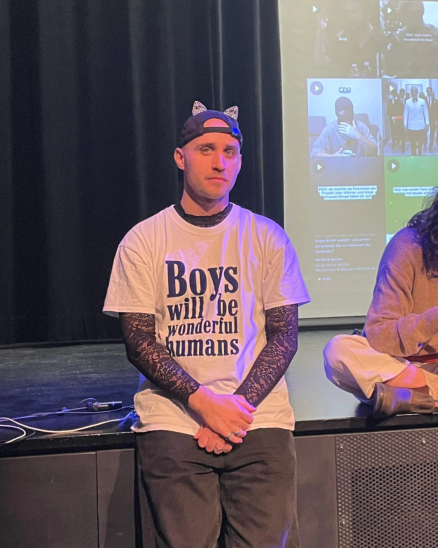 ヴァイマンさんは昨年ティックトックで3カ月の実験的プロジェクトを行った。男性優位思想のフィルターバブル(アルゴリズムで自分の好きな情報ばかりが表示される現象)に敢えて飛び込み、「男らしさ」を追求する投稿が女性差別的な内容になりかねない危険性を示した。何気ない発言がいかに人を傷つけるかを示し、見る人の感情に訴えるビデオは何百万回も視聴され、多数シェア外部リンクされた。
