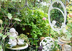 きれいな形をしたものや、かわいい工芸品が好きで、歴史を感じさせる古いものを集めてきたシュタイナーさんの趣味が高じ、自分の庭をゆっくり改造し、9年前に「開園」するまでに漕ぎついた。好きなものを集めて一人で悦に入るのではなく「こういうものを見ていると幸せになるし、思い出もできるので」人にも見てもらいたいと思ったからという。