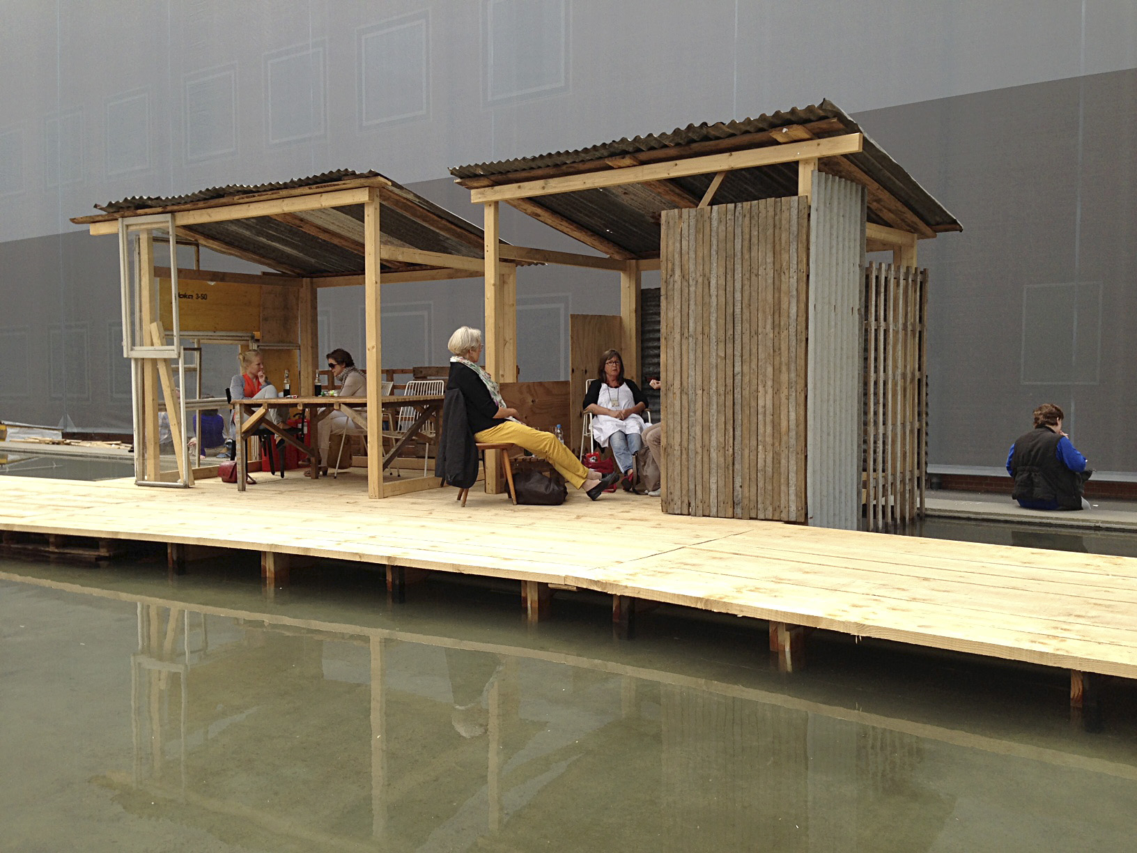 実はこのカフェで会期中、「ここにあるエスプレッソの器械は、南米の貧民街では決して手に入らないもの。このインスタレーションは本当の貧民街を表現していない」と主張する若い芸術家など約100人が、自分たちで「本当の貧民街の」小屋を建て、音楽やダンスを始めた。