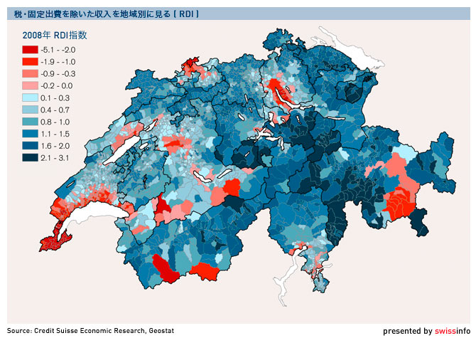 スイス国内でも家計において自由になるお金が地域によって大きく違ってきていることから、多くの人々が引越しをするようになったと調査は指摘する。マイホームに住み、税込みで年収15万6600フラン ( 約1200万円 ) の2人の子どもがいる家庭をモデルとして挙げ調査が説明するところによると、モデル世帯がバーゼル・シュタット州のベッティンゲン ( Bettingen ) に住んでいるとすると、税金と固定出費を差し引くと、年に3万6800フラン ( 約278万円 ) 手元に残るという。一方、アールガウ州ラインフェルデン ( Rheinfelden ) に住んでいるのであれば、6万1400フラン ( 約480万円 ) だ。